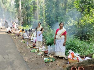 The centuries-old belief remains that any heart’s desire will shine brightly like a ray of sun when it comes to the eternal Kavya of tamboola offerings(The major ritual is to offer ‘adukku’, comprising toddy, betel leaf and tender coconut), karikku(cocunut ) pateni (padayani from the Malayalam term for military formations – a ritual art.using tender coconuts – from three to 999 – is performed daily)and Pongala offerings(a sweet rice and jaggery-based offering).