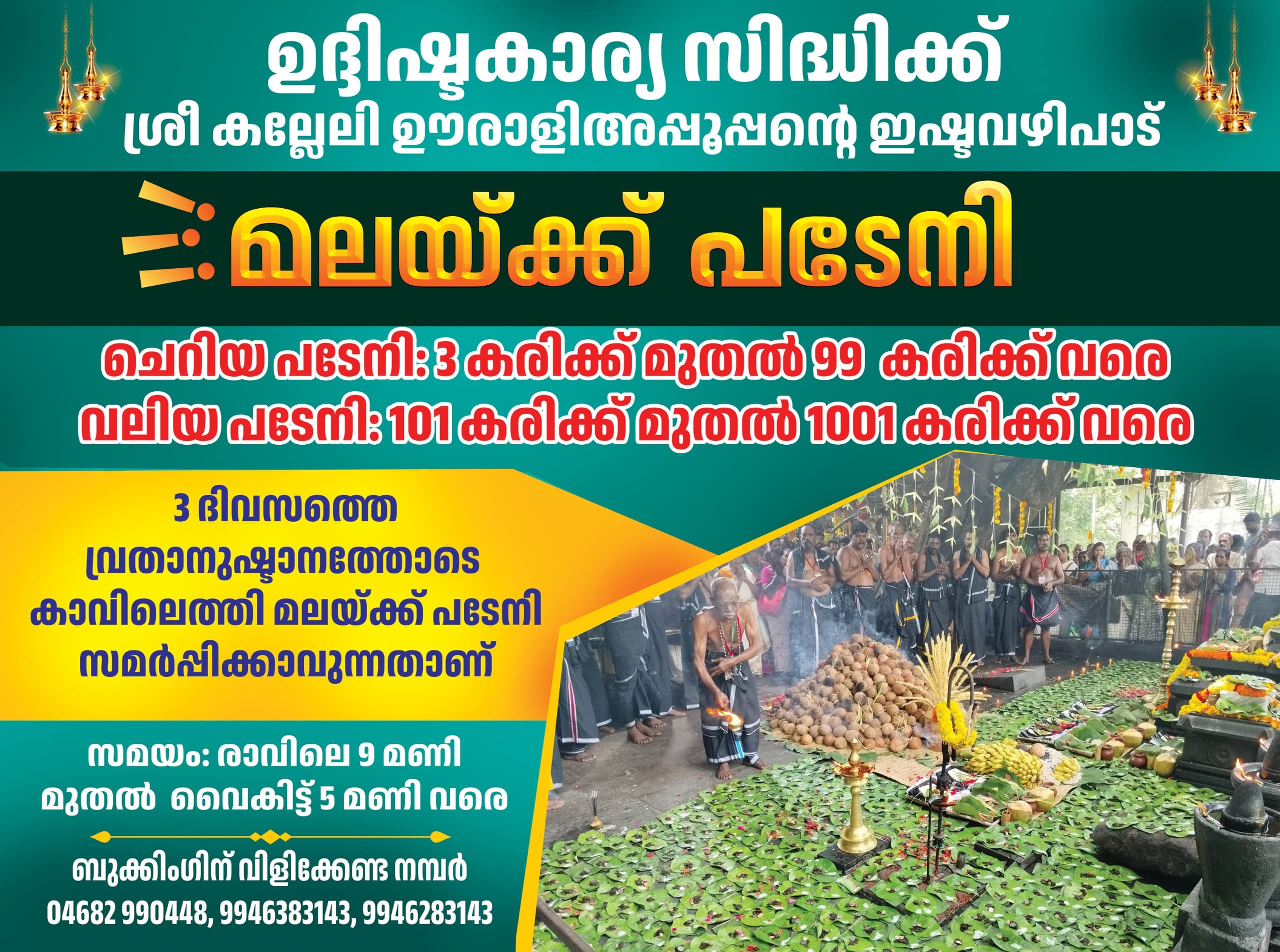 sree kallely oorali appooppan kavu, contact number : 0468 2990448,9946283143,9447514529,9946383143